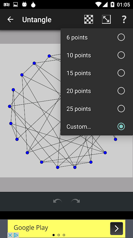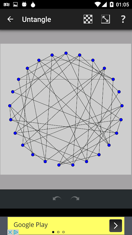You can choose number of vertices and you would be given a puzzle which you need to untangle.