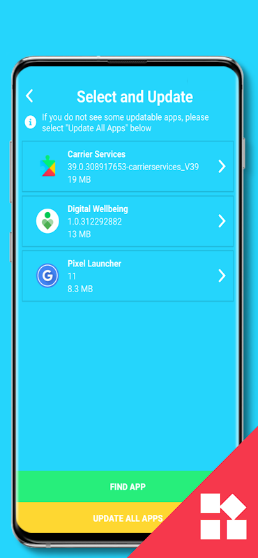 • One-tap update for all installed apps, including system apps.