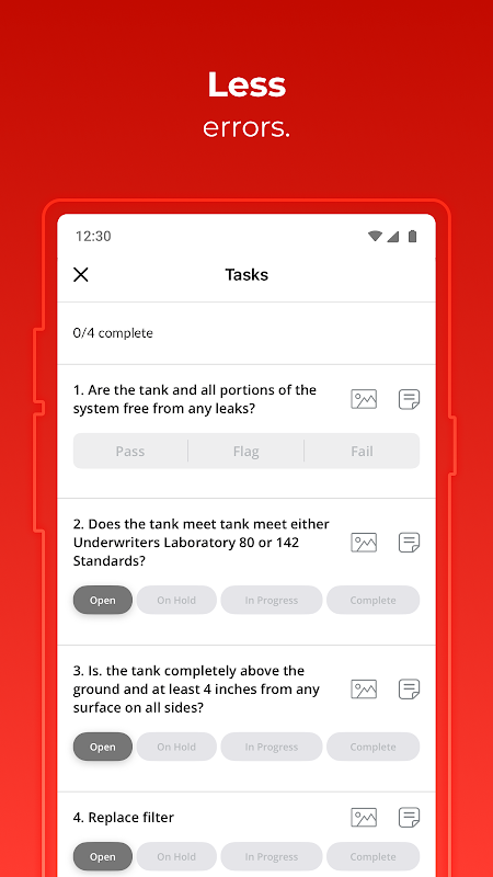 سامان کے ٹوٹے ہوئے ٹکڑے کی تصویر کھینچیں ، تصویر کھینچیں ، مرمت کا چیک لسٹ منسلک کریں ، اور اسے کسی ٹیکنیشین کو تفویض کریں۔ اپنے تفویض کردہ کام کے آرڈرز کی پیشرفت ، سب ایک جگہ پر دیکھیں۔