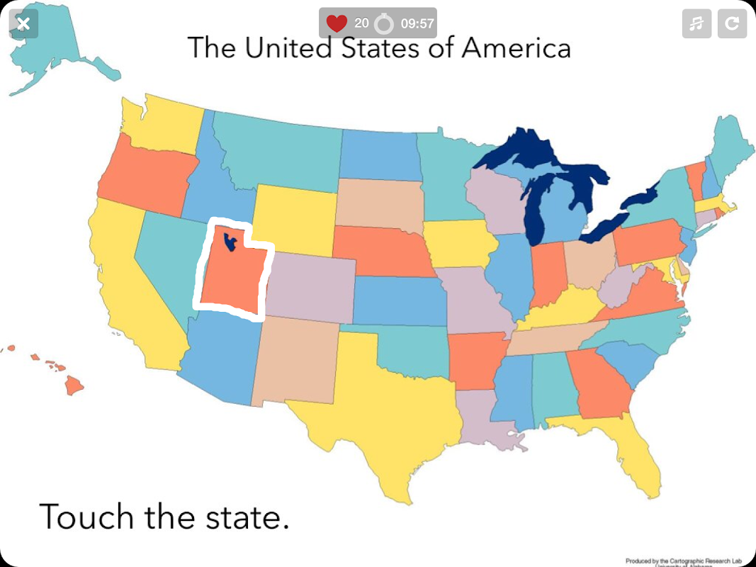 Practice U.S. Geography by tapping the right state on the map before you run out of time.