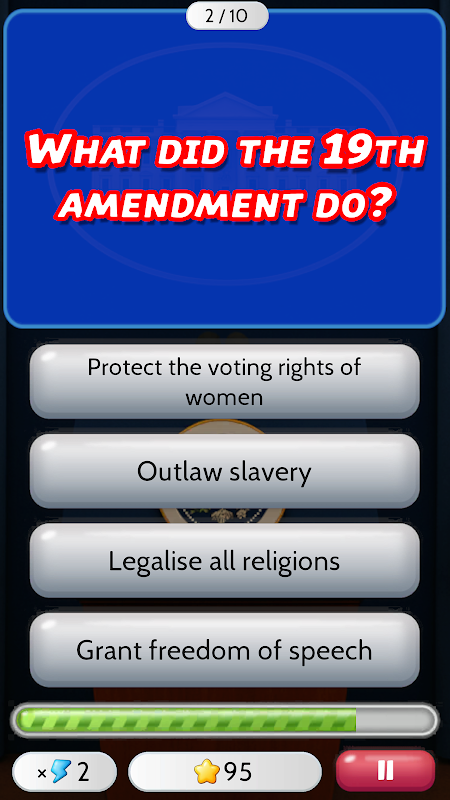 • امریکی تاریخ اور حکومت کے بارے میں عمومی معلومات کے سوالات کے جواب دیں۔