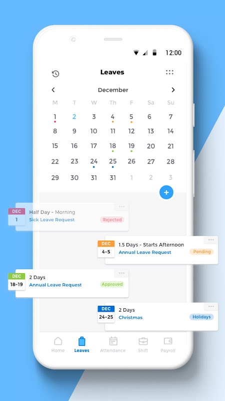 2. پتے - ایک وقف شدہ غیر حاضری کے انتظام کا صفحہ جہاں ملازمین کو فوری طور پر چھٹیوں کے لیے ان کا دستیاب الاؤنس دیکھنے کو ملتا ہے، آسانی سے غیر موجودگی کی درخواست بھی بناتا ہے جس سے وہ صرف ایک دو ٹیپ میں معاون دستاویزات اپ لوڈ کر سکتے ہیں۔ جیسے ہی وہ اس کا جائزہ لیں گے انہیں اپنے مینیجر کا فیصلہ موصول ہو جائے گا! ملازمین کو اپنی پتے کی تاریخ اور ان کے تمام چھٹیوں کے بیلنس کی رپورٹنگ دیکھنے تک بھی رسائی حاصل ہے۔