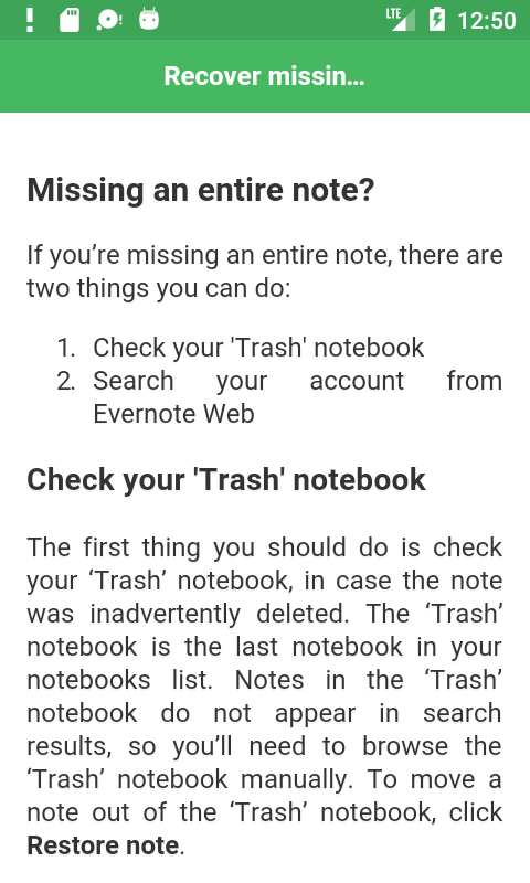 # گمشدہ نوٹ بازیافت کریں۔