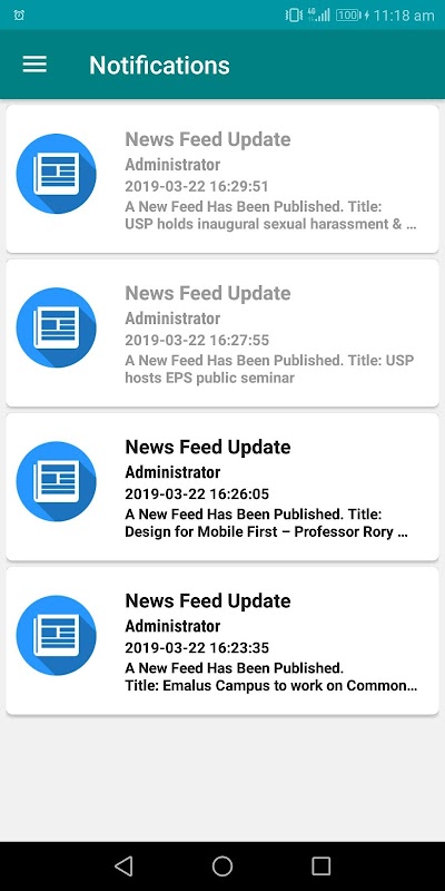 • Notification Alerts notifies users about announcements and activities. It provides notification alerts to all or targeted users of the app sent by different departments and course coordinators.