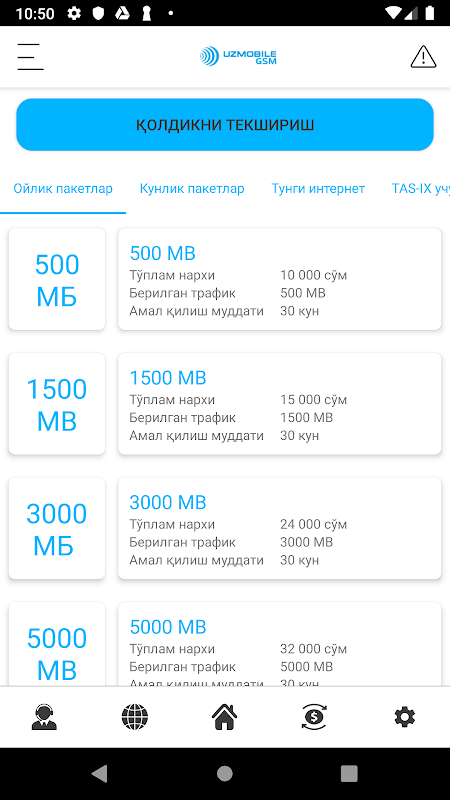 انسٹال کرنے کے بعد آپ ازبکستان کے سیلولر آپریٹرز - یو ایم ایس - یو ایم ایس ، ازموبائل - ازموبائل ، یوسل - یوسل ، بیلائن لائن اور پرفیکٹم - پرفیکٹم کے تمام سوالات کے جوابات اور درج ذیل مواقع حاصل کریں گے۔