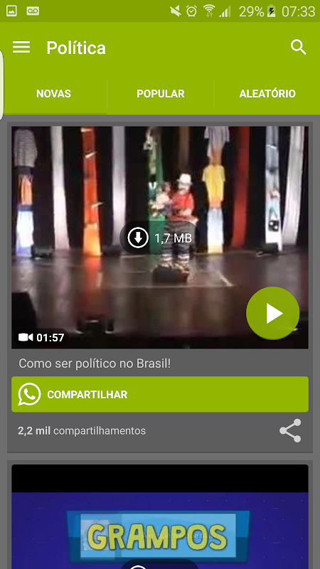 O Vídeos Engraçados possui função de compartilhamento diretamente no Whatsapp, facilitando a sua Zueira nos grupos do Whatsapp.
