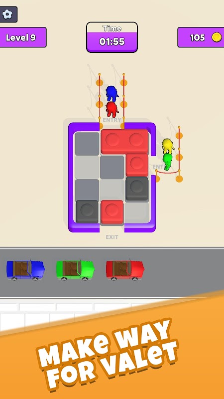 Valet Jam میں، آپ کا مشن ایک گرڈ کے ذریعے نیویگیٹ کرنا ہے، بلاکس کو حکمت عملی کے ساتھ حرکت کرتے ہوئے والیٹ کے لیے کار تک پہنچنے کے لیے ایک واضح راستہ بنانا ہے۔ لیکن ایک موڑ ہے! والیٹ اور کار کا رنگ ایک ہی ہونا چاہیے، ہر پہیلی میں چیلنج کی ایک اضافی پرت شامل کرنا۔ اس کے علاوہ، آپ کو ہر ایک پہیلی کو ایک مقررہ وقت کی حد کے اندر مکمل کرنا ہوگا، جو گیم کو مزید سنسنی خیز بنا دے گا!