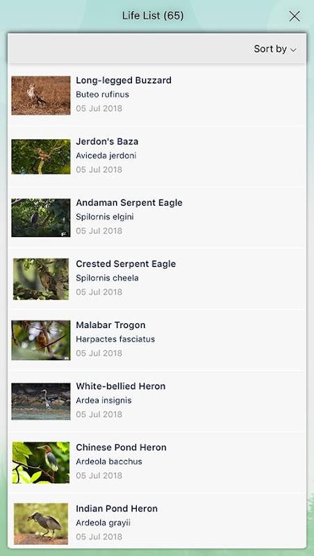 Family List: This feature gives you images of all birds of a particular family. This is particularly helpful for beginners.
