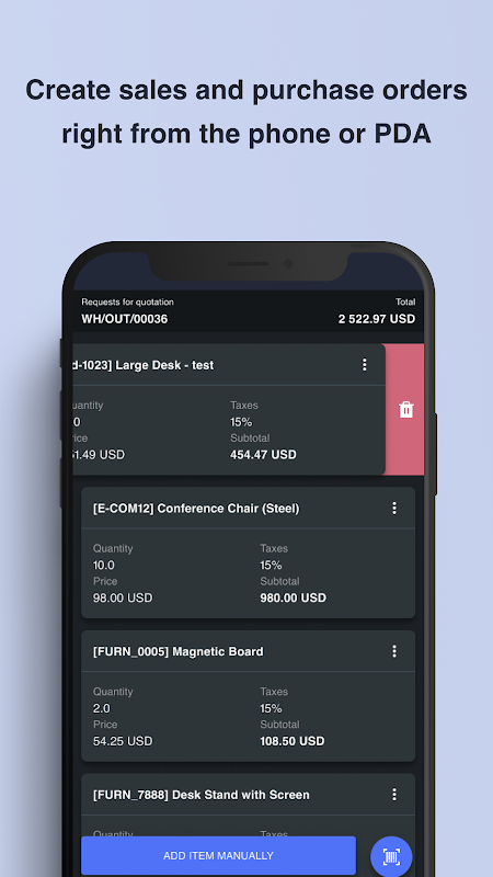 Odoo CE یا EE سے جڑا ایک موبائل ایپ کے ذریعے اسٹاک کو مینیج کریں۔