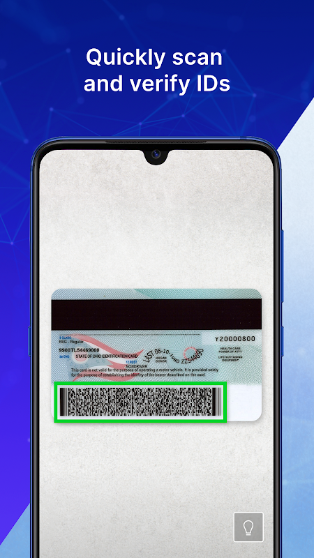 اپنے وزیٹر کا نام، تاریخ پیدائش، پتہ، ID کی میعاد ختم ہونے کی تاریخ، اور عمر جمع کرنے کے لیے بس اپنی ID کے پچھلے حصے پر موجود بارکوڈ کو اسکین کریں (جیسے کہ USA جاری کردہ ڈرائیور کا لائسنس یا ریاستی ID)۔ VeriScan آن لائن پورٹل کا استعمال کرتے ہوئے، آپ گروپس، الرٹ کی فہرستیں، اور ملٹی اسکین الرٹس ترتیب دے سکتے ہیں۔