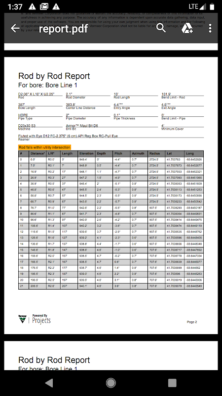 Depending on your Projects level, you could have the ability to visually capture the jobsite over a Google Maps image, including intended bore path white line, pothole locations, utility locate positions, marked utilities and bore path as-built. Achieve even better accuracy by pairing your GPS-enabled smart device with an external GPS antenna (sold separately).