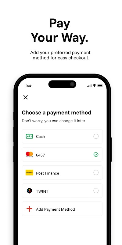 سوار کو تیز اور زیادہ آرام دہ آرڈر دینے کے لیے اپنا پسندیدہ ادائیگی کا طریقہ شامل کریں۔