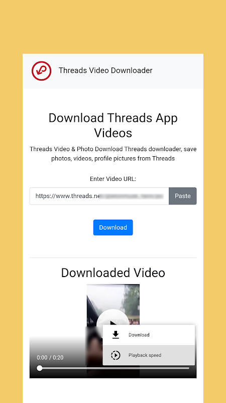 4. Go to the Threads Media Saver app, paste the link and tap on Download.