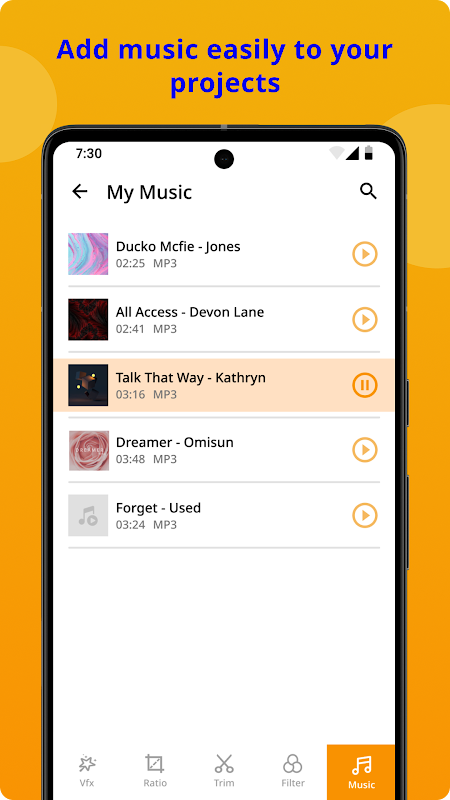 ✔️ اپنی ویڈیو میں اپنا پسندیدہ گانا شامل کریں۔