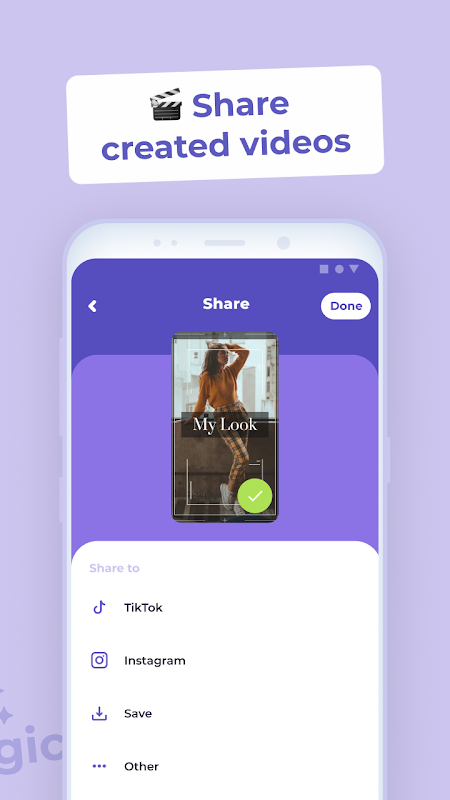 Share created videos across social media. Promote yourself using the amazing story you’ve created in just a few seconds