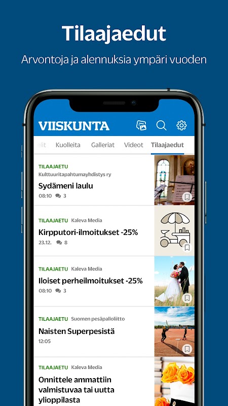 Viiskunta ایپ میں، آپ کو روزانہ تازہ ترین خبریں، واقعات اور مقامی کہانیاں Alavutti، Kuortane اور Ähtäri سے ملیں گی۔ ایپ ڈاؤن لوڈ کریں اور تصاویر اور ویڈیوز کے ساتھ مسلسل اپ ڈیٹ شدہ نیوز فیڈ، بصری میگزین اور متنوع آن لائن مضامین پڑھیں۔ اگر آپ چاہیں تو، آپ سب سے اہم خبروں کے بارے میں اطلاعات موصول کر سکتے ہیں اور آسانی سے اپنی دلچسپی کے مواد کو تلاش کر سکتے ہیں۔ ایپ میں، آپ کراس ورڈز اور سوڈوکو پزل کے ساتھ بھی مزہ کر سکتے ہیں اور ساتھ ہی Viiskunta کے سبسکرائبر فوائد سے فائدہ اٹھا سکتے ہیں۔