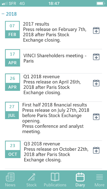 Application mobile VINCI permettant de suivre les actualités du Groupe :