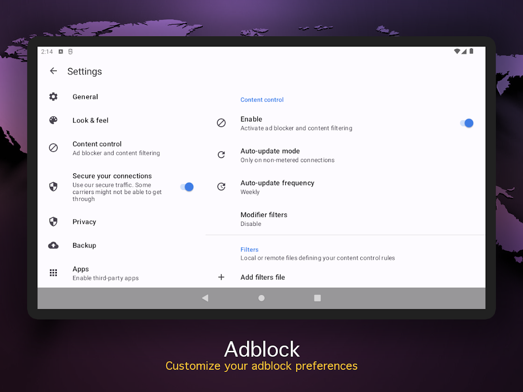 دیگر پوشیدگی ایپس کے برعکس، یہ ایک پرائیویٹ براؤزر ہے جس میں ایڈ بلاکر اور ٹریکر بلاکر ہے، جو آپ کو مداخلت کرنے والے اشتہارات یا پاپ اپس کے بغیر براؤز کرنے کی اجازت دیتا ہے۔ ایڈ بلاکر ٹریکر بلاکر فیچر والا پرائیویٹ براؤزر تھرڈ پارٹی ٹریکنگ کو روک کر آپ کی پرائیویسی کی حفاظت میں بھی مدد کرتا ہے، جس کے نتیجے میں صفحہ لوڈ ہونے کا وقت تیز ہوتا ہے اور براؤزنگ کی مجموعی کارکردگی میں بہتری آتی ہے۔