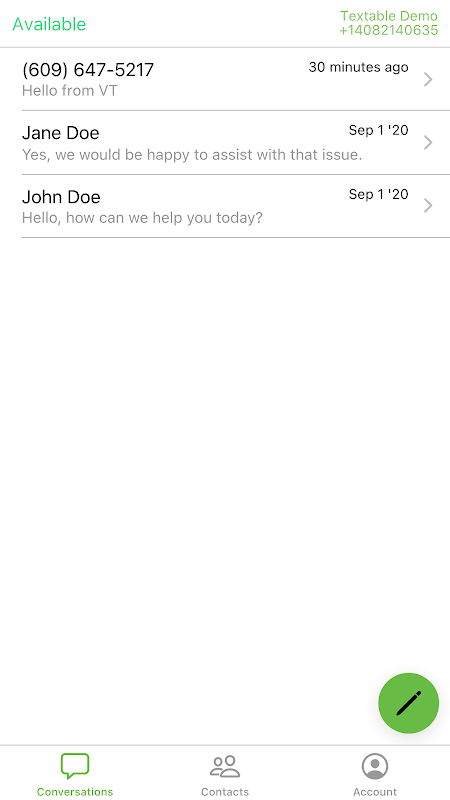 اس ایپ کو خود یا براؤزر کے ورژن کے ساتھ استعمال کریں تاکہ آپ کسی بیٹ کو چھوڑے بغیر تمام آلات پر کام کر سکیں۔ ورچوئل ٹیکسٹ ایپ آپ کے کاروبار میں ٹیکسٹنگ کی آسانی، سہولت اور بڑھتی ہوئی مصروفیت لاتی ہے۔