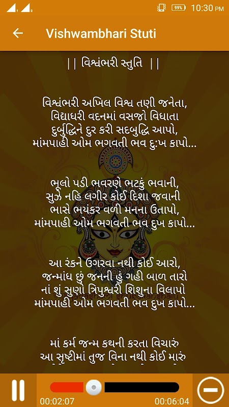 Start a day with Maa Ambe’s blessings with Vishwambhari Stuti. Don’t forget to install, rate and comment this application.