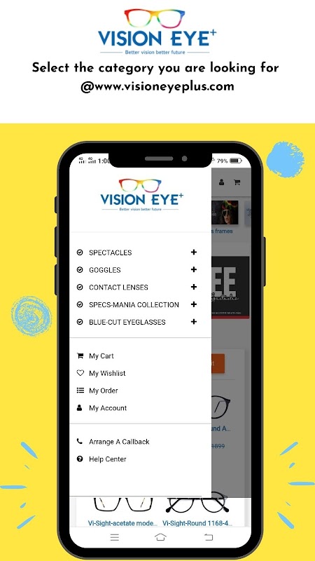 EYEGLASSESES : Serving an enormous variety of frames , trying to precedence our own brand VI-SIGHT,SYNITY adding handful of features on our website,offering color pallet, comprehensive details about the product.
