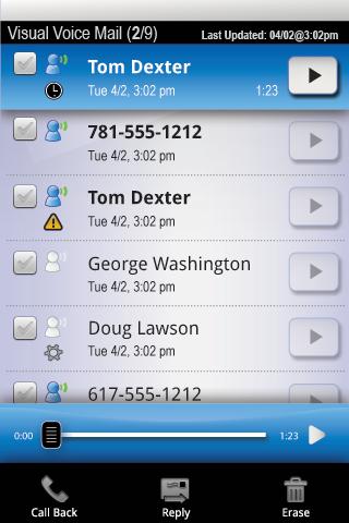 Visual Voice Mail lets you access & manage messages, so you don't have to dial Voice Mail. Scroll an inbox to listen to, erase or reply to messages. Immediately respond via callback or text. A $2.99 monthly subscription fee applies.