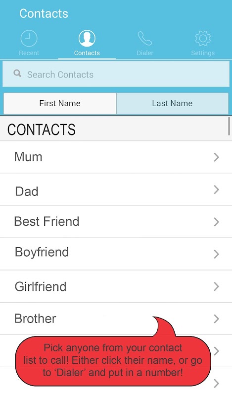 [2] Choose the contact you wish to call OR type the phone number manually.