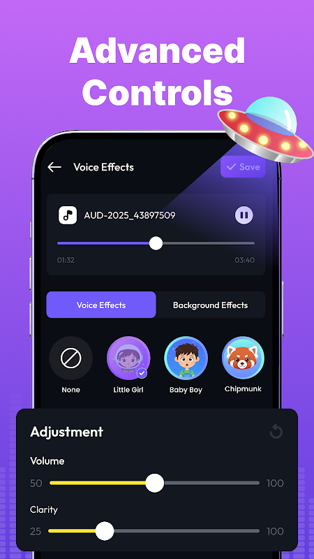 اپنی آواز کو ریکارڈ کریں اور آواز کو مکمل طور پر تبدیل کرنے کے لیے AI کا استعمال کریں۔ ایپ صوتی اثرات کی ایک وسیع رینج پیش کرتی ہے جو آپ کو روبوٹ، اجنبی، جانور، یا یہاں تک کہ کسی مشہور شخص کی طرح آواز دے سکتی ہے! آپ اپنی گیلری سے کوئی بھی آڈیو چن سکتے ہیں اور اس پر مختلف ساؤنڈ ایفیکٹس لگا سکتے ہیں، جس سے آپ کی آڈیو فائلز زیادہ دل لگی اور پرلطف ہیں۔ AI ہر اثر کے ساتھ اعلیٰ معیار کی آواز کی تبدیلی کو یقینی بناتا ہے، جس سے آپ کو ایسی آواز ملتی ہے جو عام کے سوا کچھ بھی نہیں ہے۔