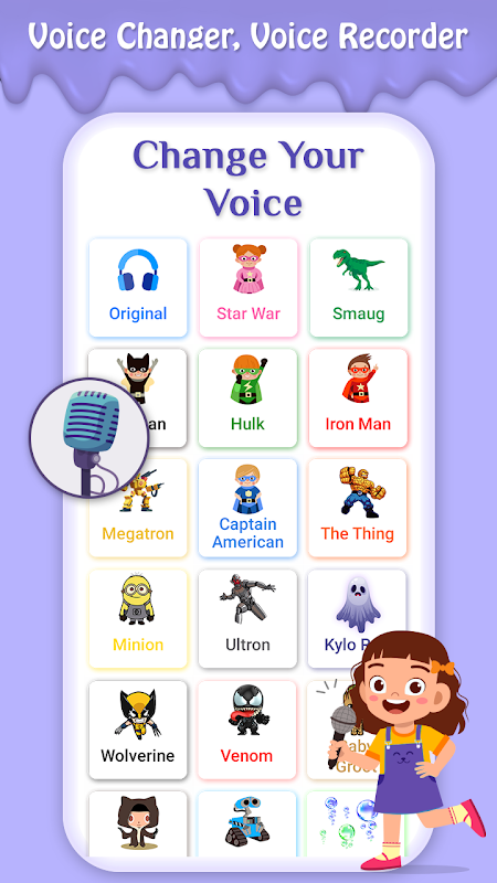 - اپنی آواز کو تبدیل کرنے کے اثرات کی ایک بڑی قسم: اصل ، اسٹار وار ، سماؤگ ، بیٹ مین ، ہلک ، آئرن مین ، میگٹرون ، کیپٹن امریکن ، میوزک ہال ، تھیٹر ، کراوکی اور بہت کچھ