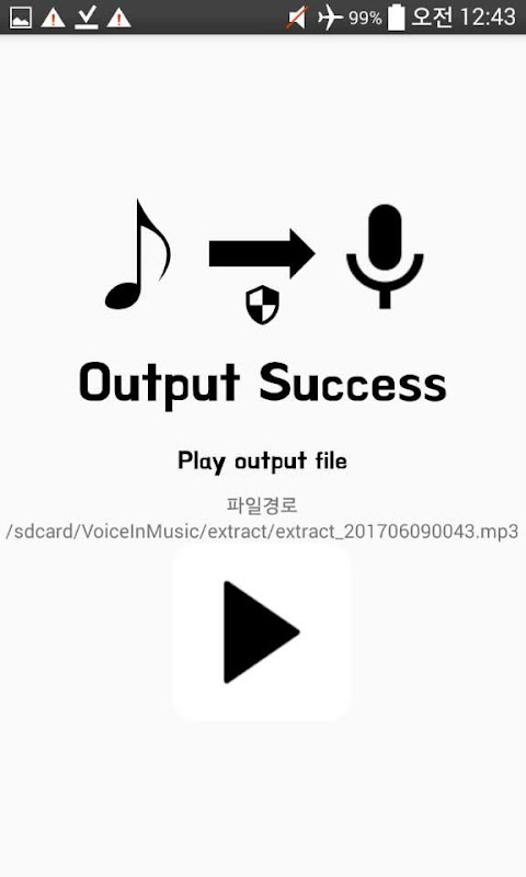 이 어플로 음성메모를 숨긴 mp3로부터 메시지를 추출하게 되면