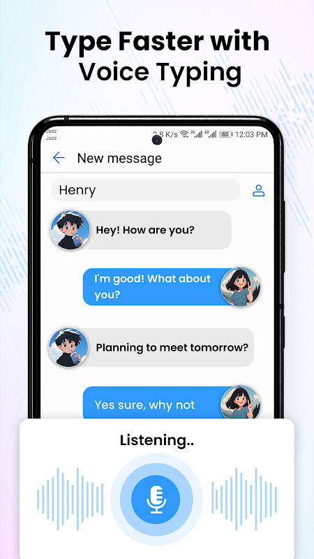 صوتی کی بورڈ کے ساتھ ٹائپ کریں، چیٹ کریں اور بات چیت کریں—روزمرہ کے پیغامات، ای میلز اور نوٹس کے لیے ایک سادہ، خوبصورت صوتی ٹائپنگ (اسپیچ ٹو ٹیکسٹ) کی بورڈ۔ اپنی آواز یا کلیدیں استعمال کریں، پھر ترجمہ، گرامر چیک، اور جواب لکھنے کے لیے آن کی بورڈ ٹولز کے ساتھ متن کو بہتر کریں۔
