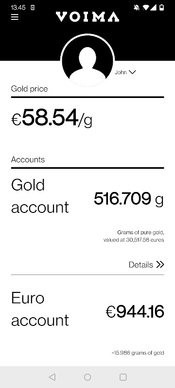 Voima اکاؤنٹ کے ذریعے، آپ سونے کے بدلے یورو اور سونے کے بدلے یورو کا تبادلہ کر سکتے ہیں۔ آپ اپنا سونا Voima کے ساتھ محفوظ طریقے سے ذخیرہ کر سکتے ہیں یا، اگر آپ چاہیں، تو اسے 24 گھنٹے کی اطلاعی مدت کے ساتھ اپنے اسٹوریج میں واپس لے سکتے ہیں۔