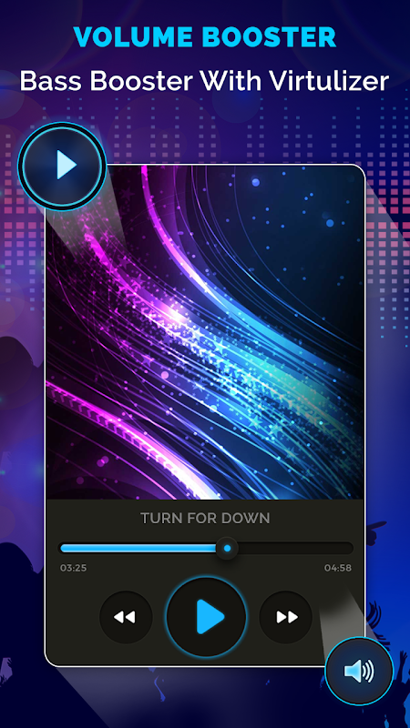 Equalizer - Bass Booster & Sound Booster Volume booster & Equalizer is a easy-to-use equalizer has various features including: five band equalizer, bass booster, 3D virtualizer, slider volume & audio control, enjoy live music visual!