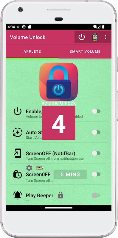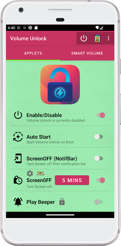 کے پرانے ورژن Volume Unlock, 'power button!"
