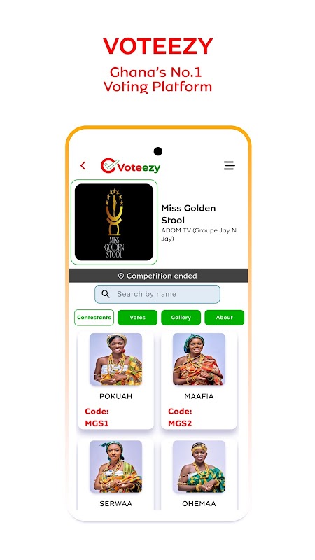Voteezy ایک ملٹی پلیٹ فارم ووٹنگ سسٹم ہے جو صارفین کو USSD، voteezy.com ویب سائٹ اور موبائل ایپس پر ووٹ دینے کی اجازت دیتا ہے۔