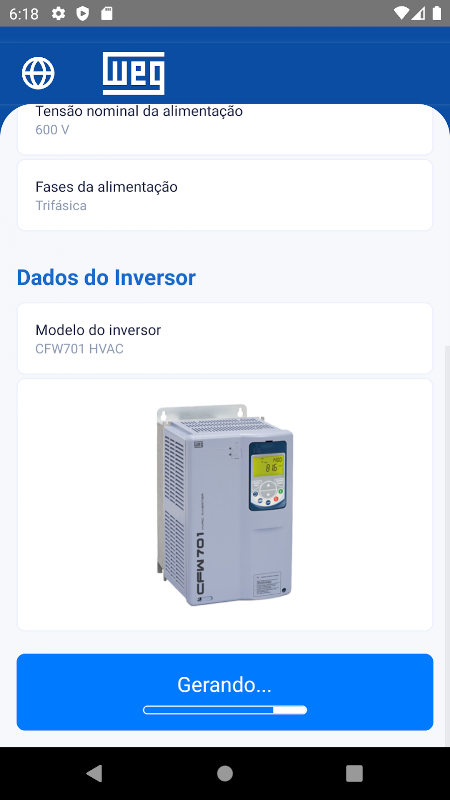 بنیادی موٹر ڈیٹا فراہم کریں اور WEG انورٹر فیملی کے اندر اپنی درخواست کے لیے بہترین آپشن کا انتخاب کریں۔ قابل ہونے کے علاوہ، آخر میں، پروڈکٹ کے بارے میں مزید معلومات اور کوٹیشنز کی درخواست کرنے کے لیے۔