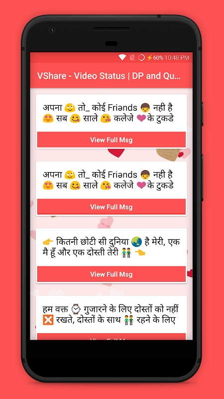 VShare app provides Video Status, DP & Quotes with different category.