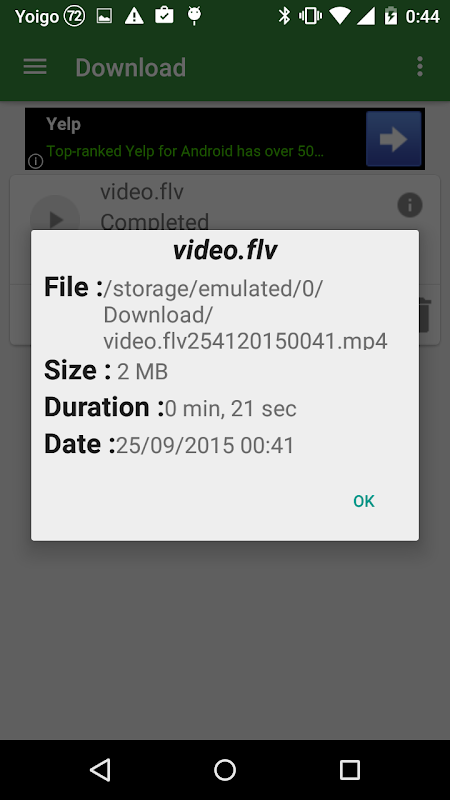 You can choose your preferred video player (MX Player, VPlayer ...), share the videos,You can cancel the download and retrieve later on.