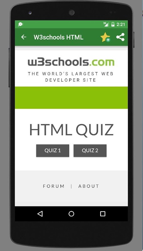 W3Schools Offline application provides brief introduction about HTML and it helps to learn HTML in easy way. It contains lots of features such as HTML Editor, Offline HTML Quiz and etc.