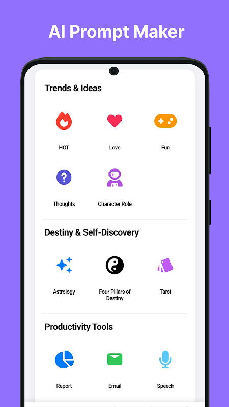 Waitcle کے ساتھ، آپ کو علم نجوم کی اصطلاحات، تقدیر کے روایتی نظام، یا فوری تحریر میں ماہر ہونے کی ضرورت نہیں ہے۔ بس پیدائش کی بنیادی معلومات درج کریں، اور ایپ ٹیکسٹ فارمیٹ میں استعمال کے لیے تیار قسمت کا اشارہ تیار کرتی ہے۔ تشریح حاصل کرنے کے لیے اسے کاپی کریں اور اسے کسی بھی AI پلیٹ فارم میں پیسٹ کریں۔