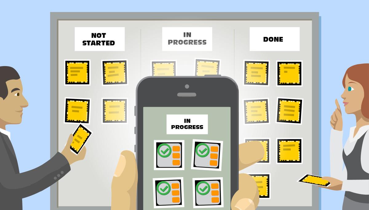 Use your phone or tablet to keep your cards in sync on a physical wall with JIRA Agile.