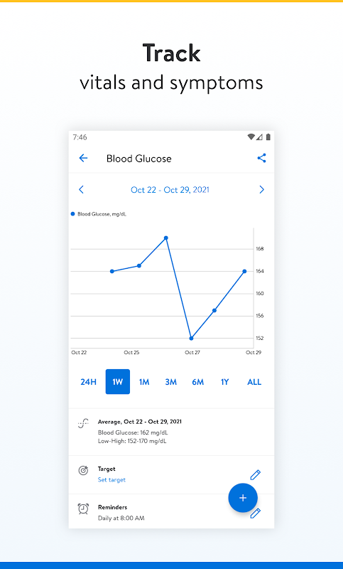 • آپ کا ذاتی ڈیش بورڈ آپ کو اپنی دوائیں لینے کے وقت ریکارڈ کرنے کا اشارہ کرتا ہے۔