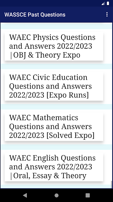 اس ایپ میں WAEC WASSCE کے ماضی کے سوالات یہ ہیں: