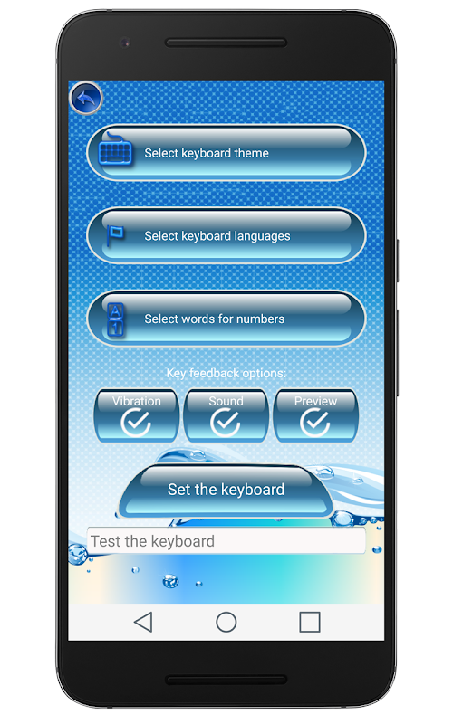 ♒ Get the best ✦ Water Keyboard ✦ on the market and make it look like you are typing on water keys! Try our new typewriter with amazing “SMS themes” that will take you on an underwater adventure! Text messaging will become a completely different experience with this keypad layout! Set it to any out of 5 common languages and set your new Android™ keyboard! ♒