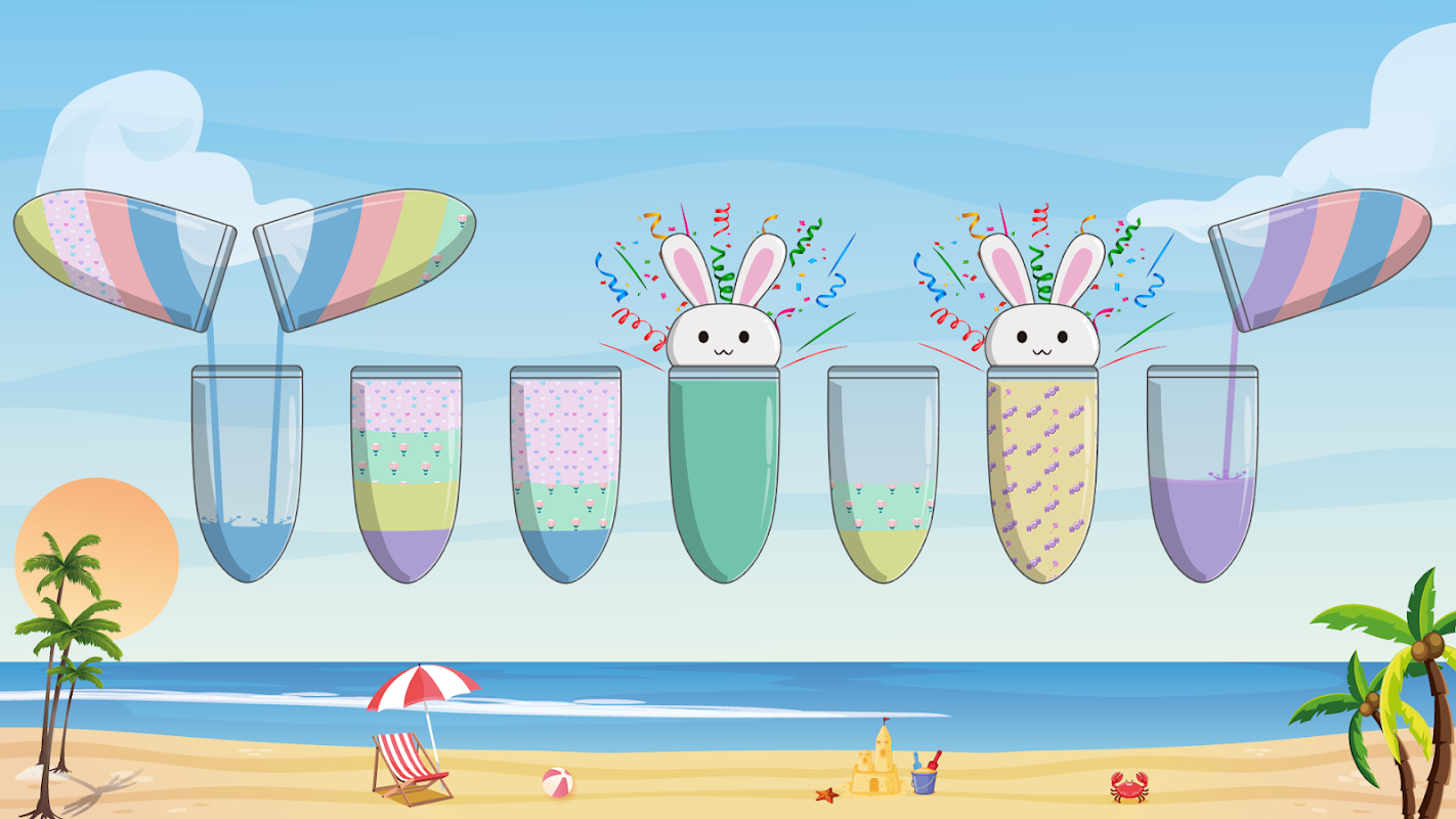 🧪 رنگین پانی کو دوسری بوتل میں ڈالنے کے لیے کسی بھی بوتل کو تھپتھپائیں اور اسے ترتیب دیں! پانی ڈالنے کا اصول یہ ہے کہ صرف ایک ہی رنگ کا پانی اور کپ میں کافی جگہ ایک دوسرے کو ڈالی جا سکتی ہے۔