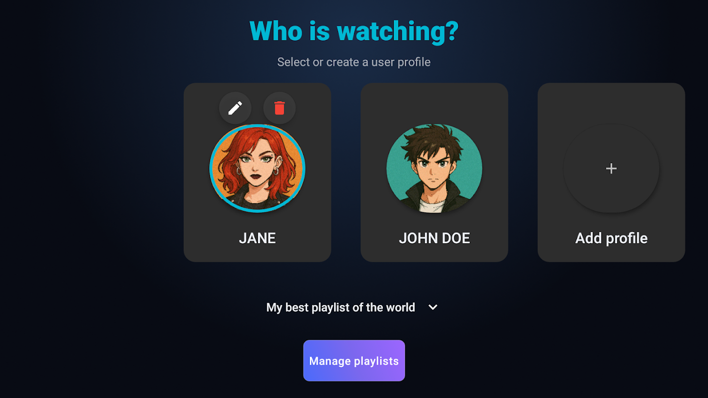 📂 منسلک پلے لسٹس کے ساتھ ملٹی پروفائل مینجمنٹ: ہر صارف اپنا مواد، علیحدہ پسندیدہ اور دیکھنے کی سرگزشت کے ساتھ دیکھ سکتا ہے