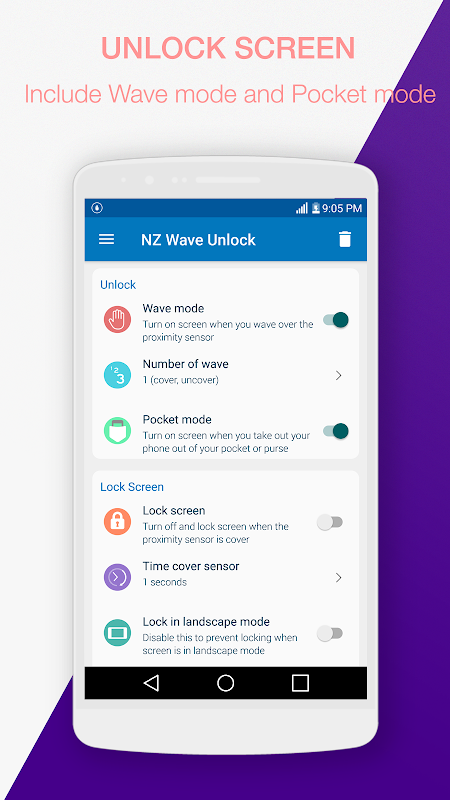 Wave Unlock is an app use Proximity sensor to unlock screen and lock screen by wave your hand over the proximity sensor. NZ Wave to unlock is allows you to unlock your device just by waving your hand over the proximity sensor and cover Proximity sensor to lock screen.