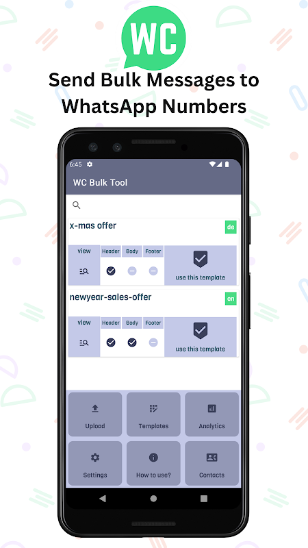 ایک سادہ اور بدیہی انٹرفیس کے ساتھ، ہماری ایپ آپ کے لیے WhatsApp پر اپنے رابطوں کو بڑے پیمانے پر پیغامات بھیجنا آسان بناتی ہے۔ چاہے آپ ایک کاروباری مالک ہو جو اپنے گاہکوں تک پہنچنا چاہتے ہو یا کوئی فرد جو دوستوں کے ایک بڑے گروپ کے ساتھ رابطے میں رہنا چاہتا ہو، ہماری ایپ نے آپ کا احاطہ کیا ہے۔