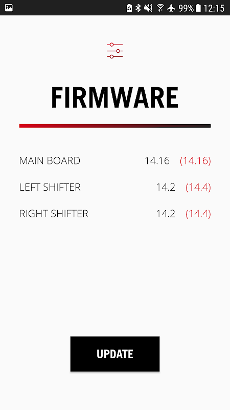 This menu allow you to access the firmware update page, check the instruction of both drivetrain use and installaion and application, seve you seeting profile.