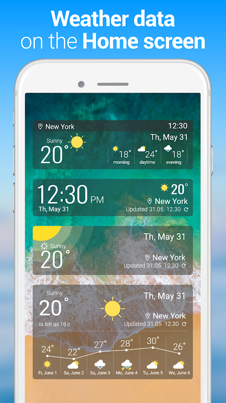 Weather apps best quality is its accessibility at anytime you need it most. That's why Lazure Weather comprises a forecast widget to let you see weather live free with no trouble.